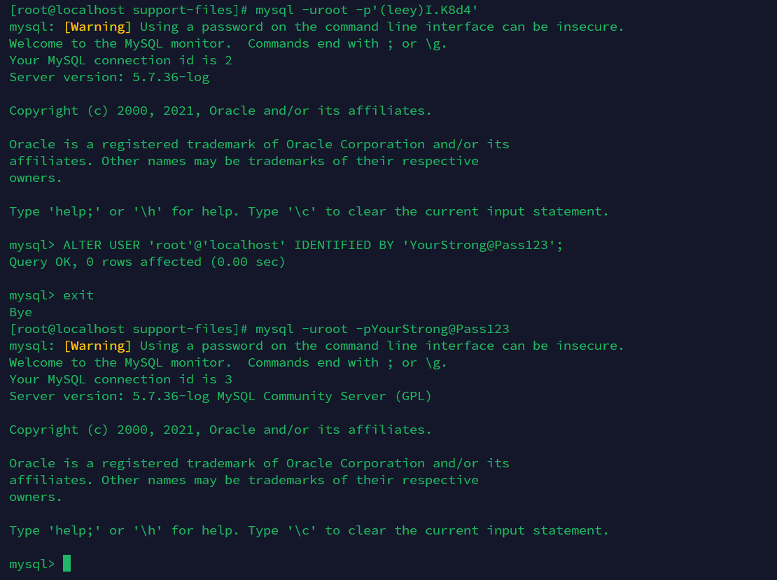 #mysql5.7默认使用初始化密码登陆后,必须修改密码才能进行其他操作