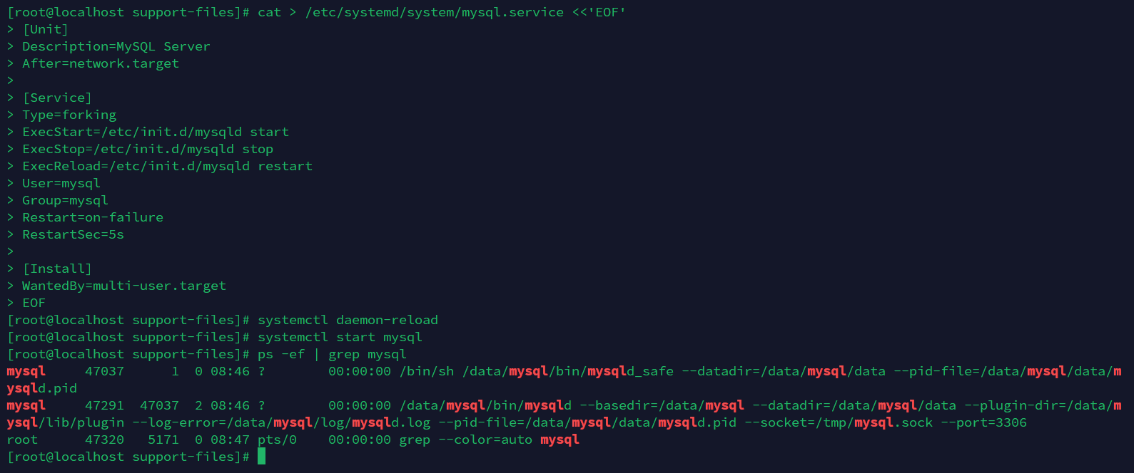 cat > /etc/systemd/system/mysql.service <<'EOF'